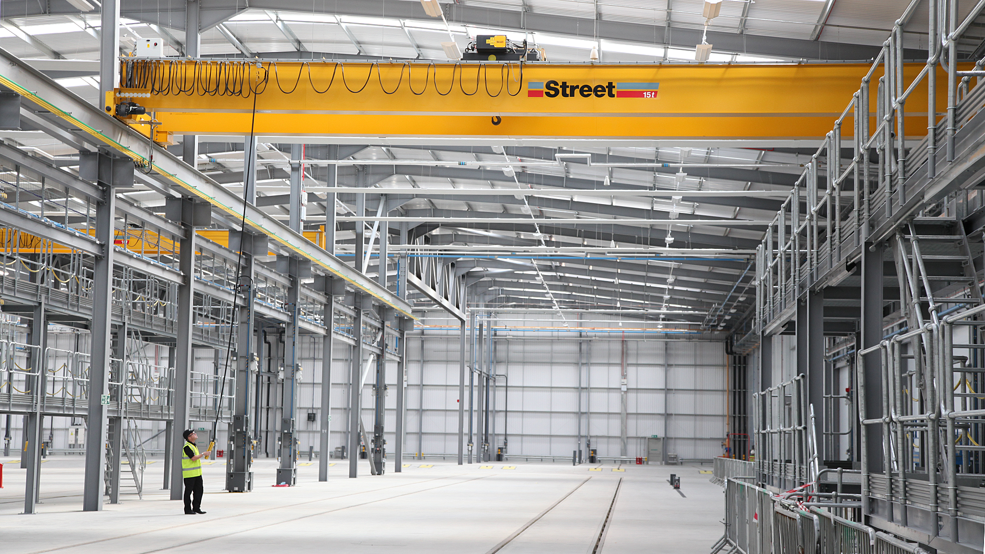 "Street worked in partnership with our architects during the pre-construction stage of our rail vehicle manufacturing facility to design bespoke cranes matched to the specific requirements of our operation. Delivered and installed on time, and in line with our construction schedule, the Street cranes are an essential part of our train manufacturing process. They play a vital role in ensuring carriages are built as quickly, safely and efficiently as possible."